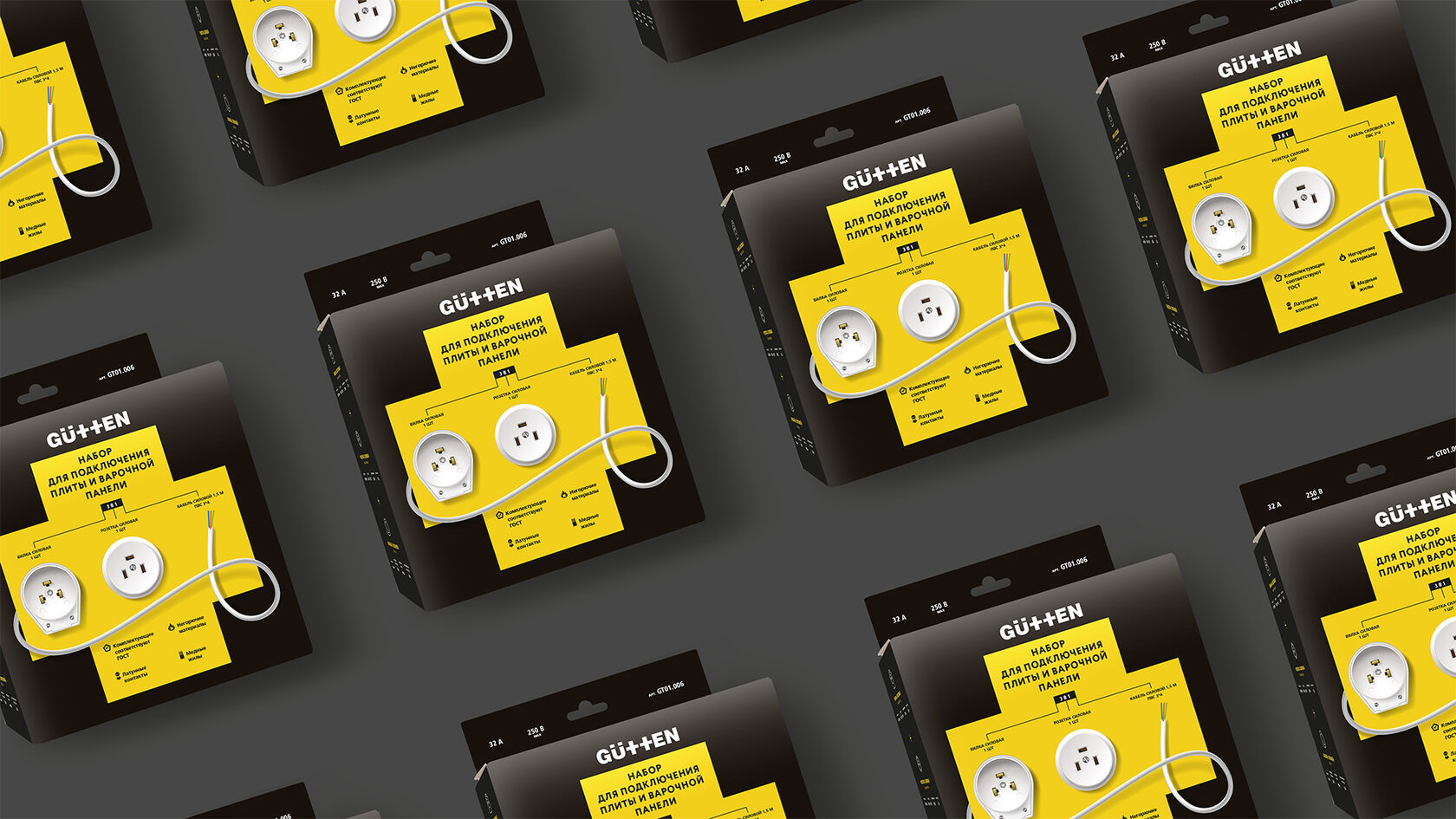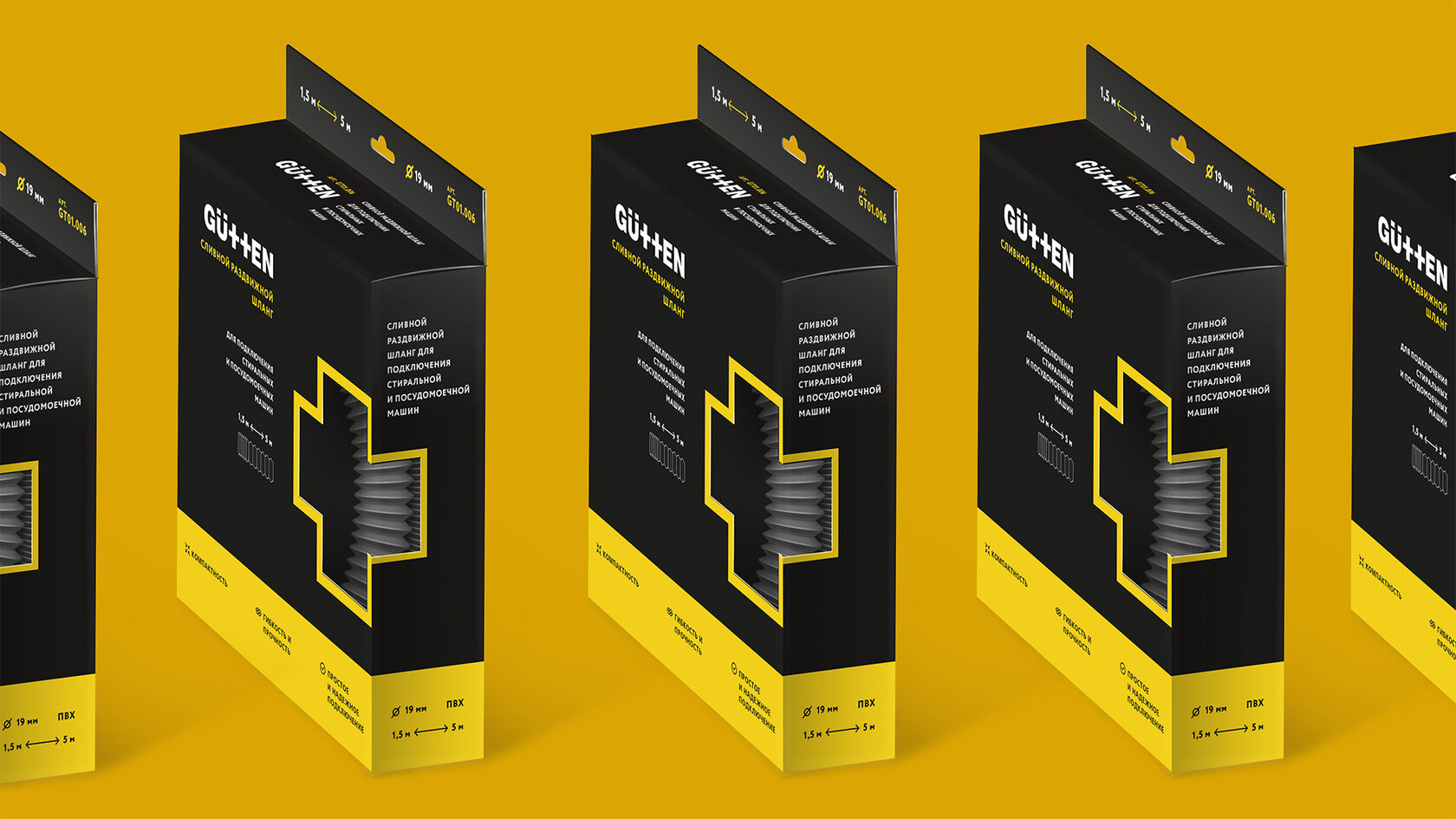 Чтобы покупателю было максимально понятно, что он приобретает, мы, во-первых, разработали для Gutten дизайн упаковки с оригинальной вырубкой, а, во-вторых, разместили на ней инфографику, которая дает полное представление, как правильно использовать аксессуары при подключении бытовой техники.